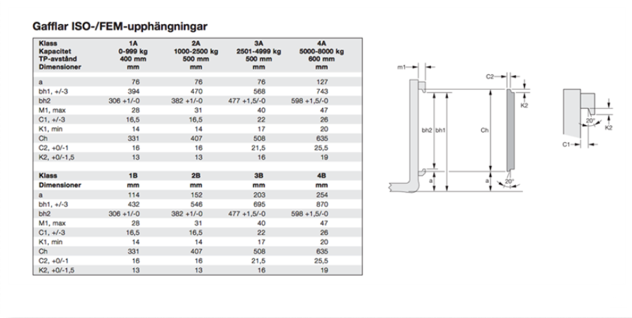 Gaffelbenen vi har är konstruerade enligt Europeisk standard, så kallad FEM-upphängning.