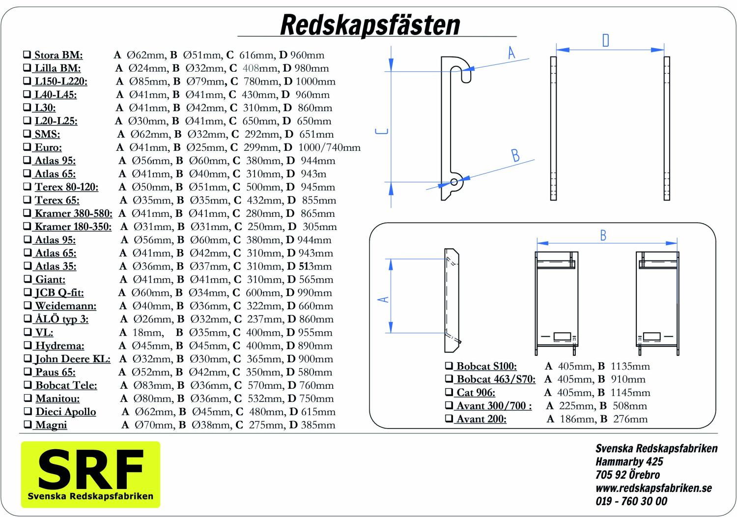 I bilden nedan kan du se ett antal mått på de vanligaste redskapsfästena.