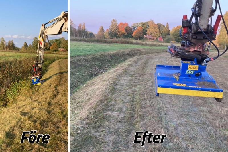 FH100 har en klippbredd på 1000mm. Kräver ett oljeflöde på 40-90 liter, passar grävmaskiner på 3 ton och uppåt. Kräver ingen extra läckledning/oljeretur. Lämplig för rensning av diken, snår och andra områden som hyser ovälkommen vegetation. Klipper med knivar monterade på en tallrik. FH100 har dessutom dubbla knivar på höjden, det gör att materialet blir riktigt finfördelat.