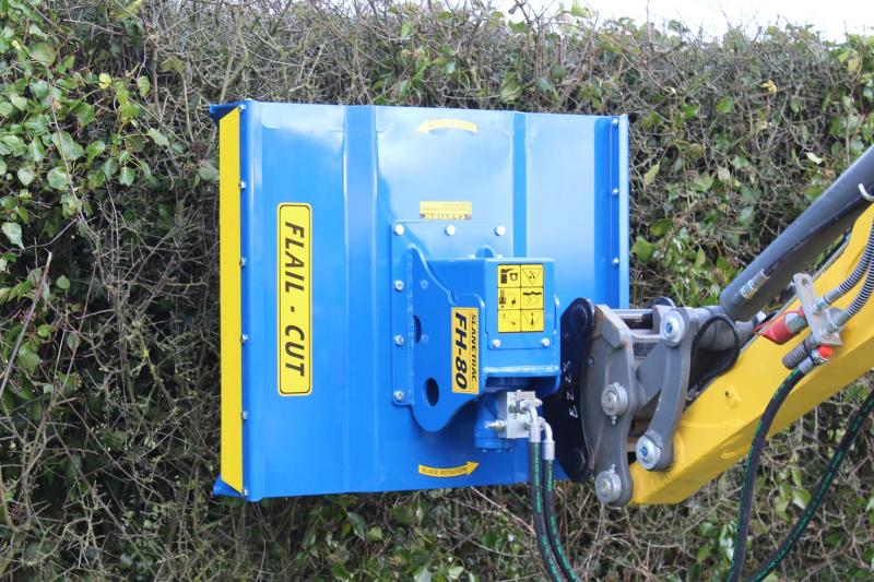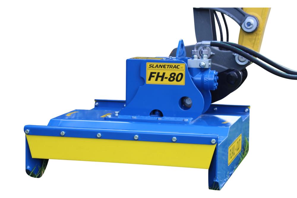FH80 har en klippbredd på 800mm. Kräver ett oljeflöde på 25-50 liter/ minut, passar grävmaskiner på 1,5 -2,5 ton. Lämplig för rensning av diken, snår och andra områden som hyser ovälkommen vegetation. Klipper med knivar monterade på en tallrik. Kan med fördel även användas för att toppa och ansa buskar, häckar och träd.