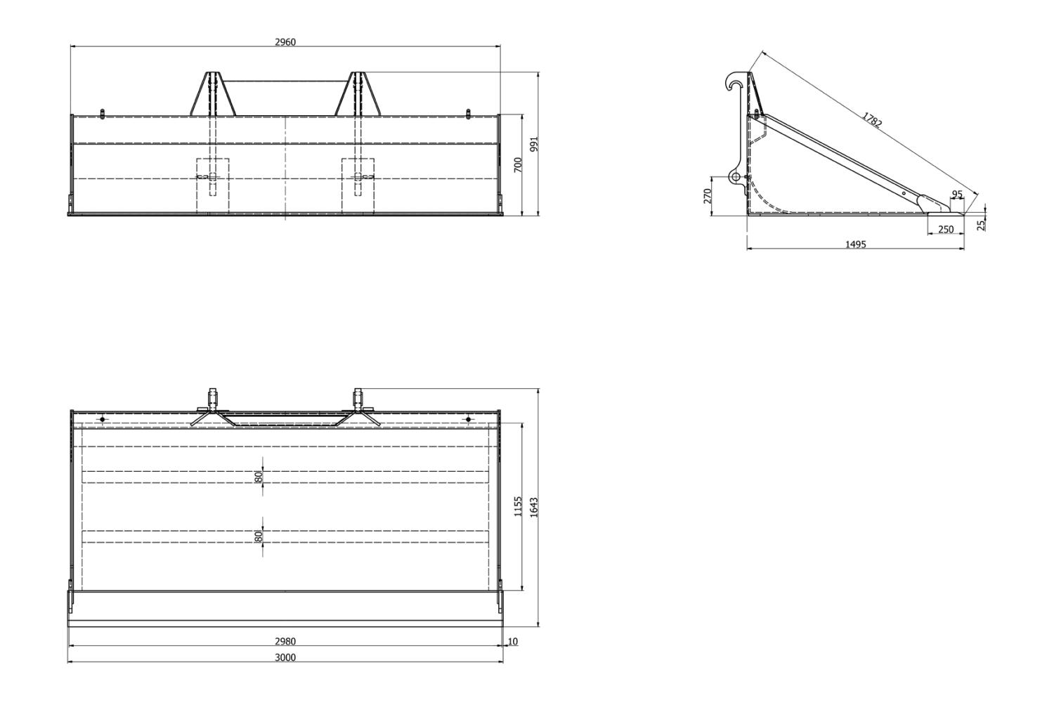 SRF Planeringsskopa Stora BM - 3000 mm
